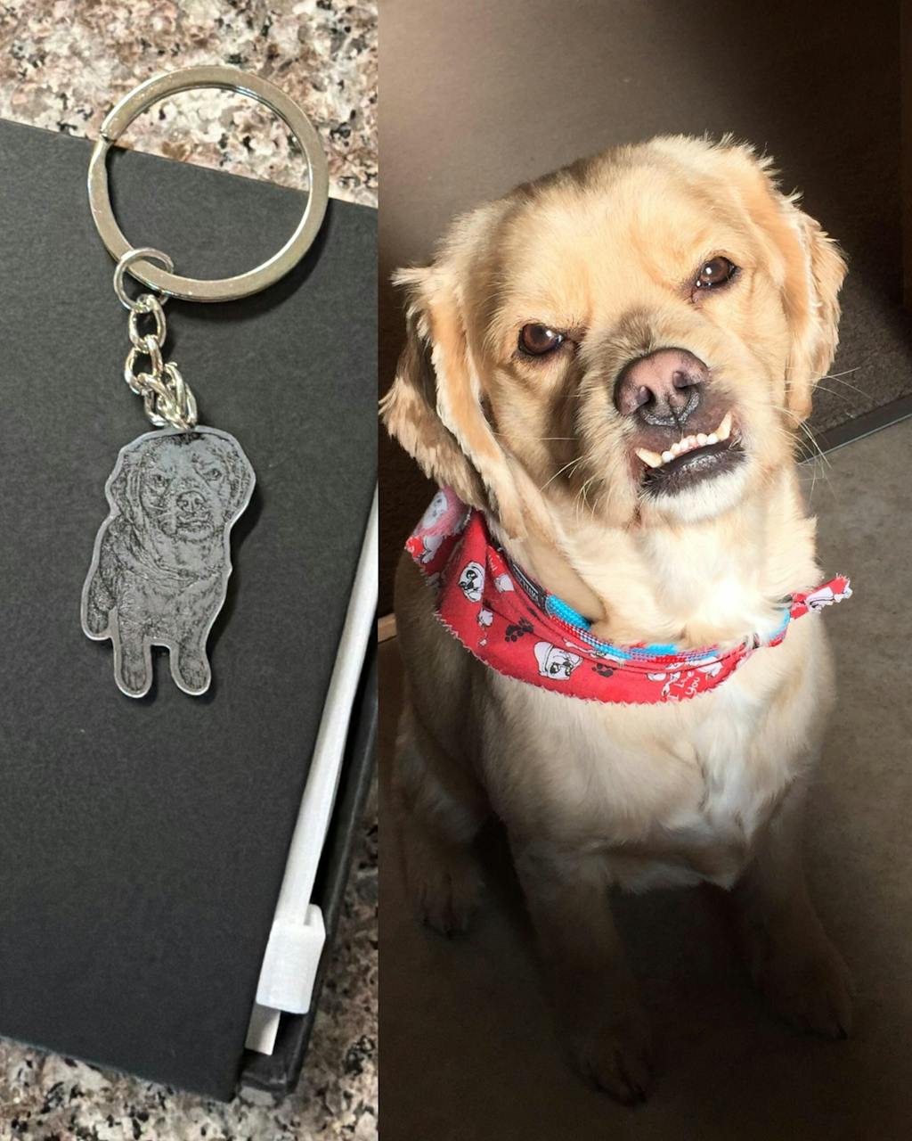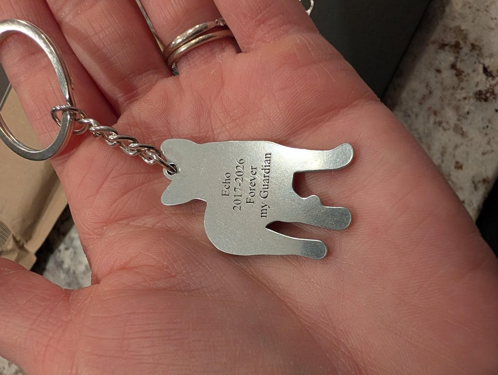 My friend got me a keychain of my dog who passed in 2023 from diabetes. He was my best friend and had been there with me through so many life changes. I miss him and thinking about him everyday. Along with my tattoo from the same photo, this keychain will also stay by my side just like he did.